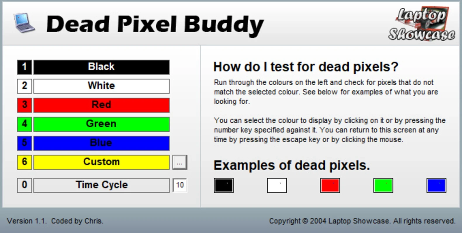 Dead Pixel Buddy для ПК с Windows — это небольшая, но мощная программа для обнаружения любых типов битых пикселей на ЖК-дисплее. Лучший выбор для экономии времени и денег, не требующий установки и занимающий совсем немного места на жёстком диске вашей операционной системы.